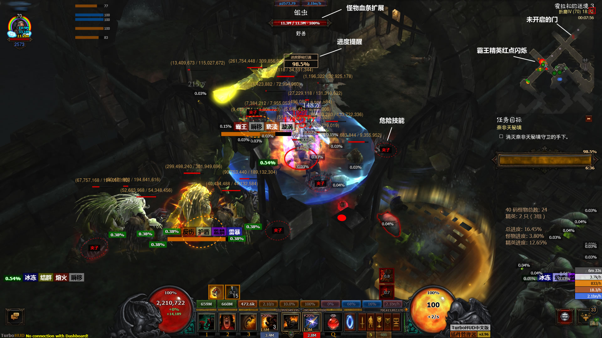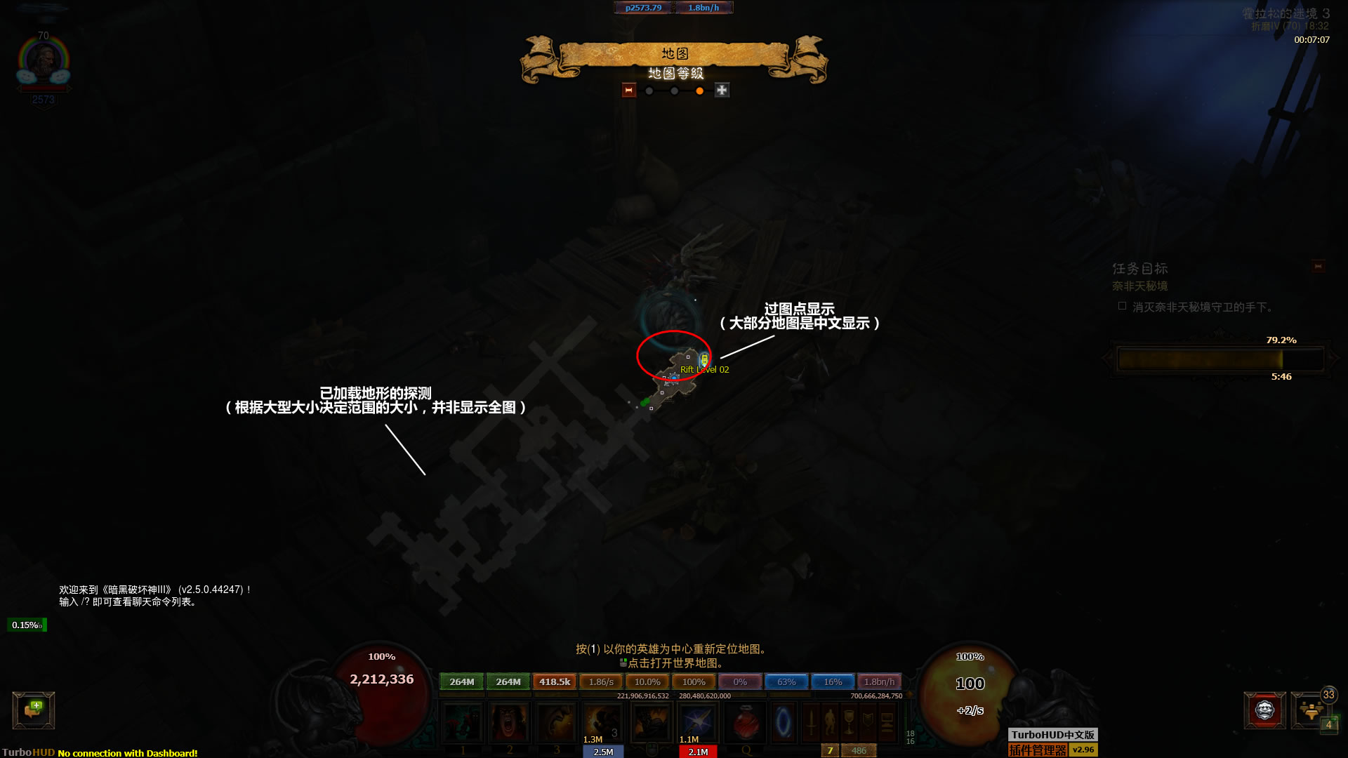 由于游戏机制的关系,TurboHUD分析得到数据的范围是有限制的,所有不在附近的信息都无法被侦测到
